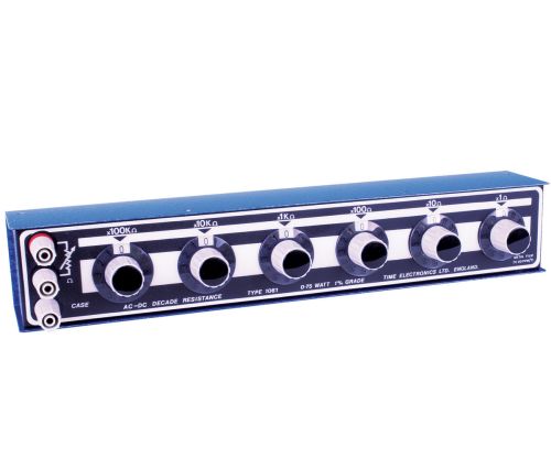 Download Data Sheet | Manual Learn More$1,675.00 - 1065 - 6 Decade Power Resistance BoxA high power resistance box suitable for industrial and research & design applications. Range is 0 to 120kΩ in 0.1Ω steps, best accuracy is 1%, and each resistor has a 10 watt power rating.