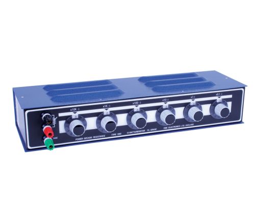 - 1068 - 5 Fixed Resistance BoxA compact 5 fixed value resistance box designed for industrial, general laboratory, and education requirements. Housed in a robust case the 1068 is easily portable and takes up minimal bench space. It is low cost and simple operation instrument, a popular model for physics and electronics laboratories in colleges and schools.