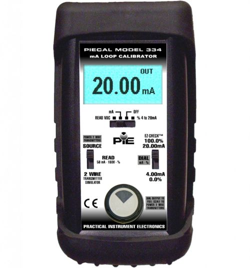 Download Data Sheet Learn More$1,339.00 - PIE 334 Milliamp Loop CalibratorThe PIECAL 334 is functionally equivalent to similar calibrators with four digit displays, knobs and switches. Improvements over 334s from other manufacturers include better long term stability, accuracy, reliability and ruggedness plus improved battery life. The PIECAL 334 gives you advantages of an updated design while maintaining the familiar, time proven ease of use of similar calibrators. The PIECAL 334 is the perfect replacement for your worn out milliamp calibrators!