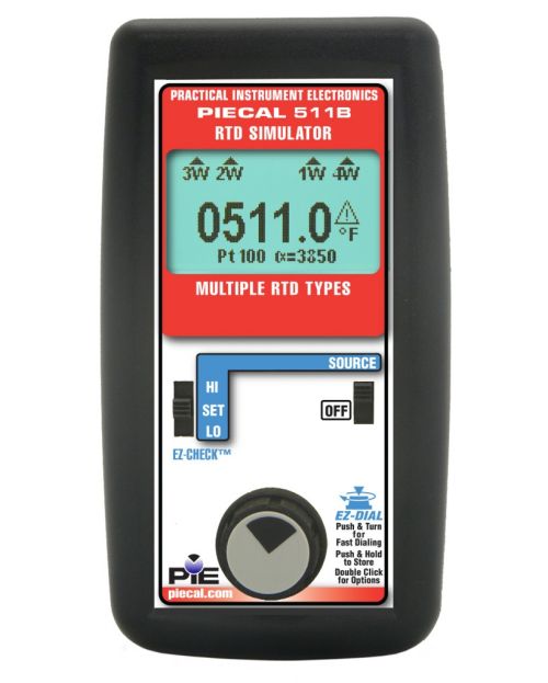 Download Data Sheet | Product Manual Learn More$1,809.00 - PIE 511B Ten Type RTD Plus Ω SimulatorThe PIECAL 511B simulates RTD resistances into all types of instruments such as transmitters, recorders, controllers, alarms, data acquisition, and computer systems. The PIECAL 511B is a superior replacement for decade boxes, so there is no need to lug a decade box around or be prone to error by reading RTD tables incorrectly. The PIECAL 511B has better accuracy and functions of many higher priced RTD calibrators.