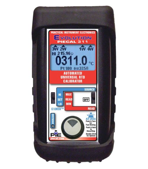 Download Data Sheet Learn More$1,159.00 - PIE 311 Automated Universal RTD CalibratorThe PIECAL 311 is functionally equivalent to similar calibrators with five digit displays, knobs and switches. The PIECAL 311 gives you advantages of an updated design while maintaining the familiar, time proven ease of use of similar calibrators. Choose the PIECAL 311 and get an RTD calibrator with a more digits (0.01° resolution), automatic stepping, backlit display, a rubber boot and rugged switches. It is also compatible with more instruments in the field.